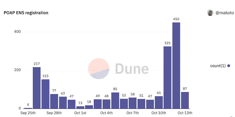 Once printed, the participants started swapping each other's cards and a total of 18,743 POAPs were collected by 2,197 people.