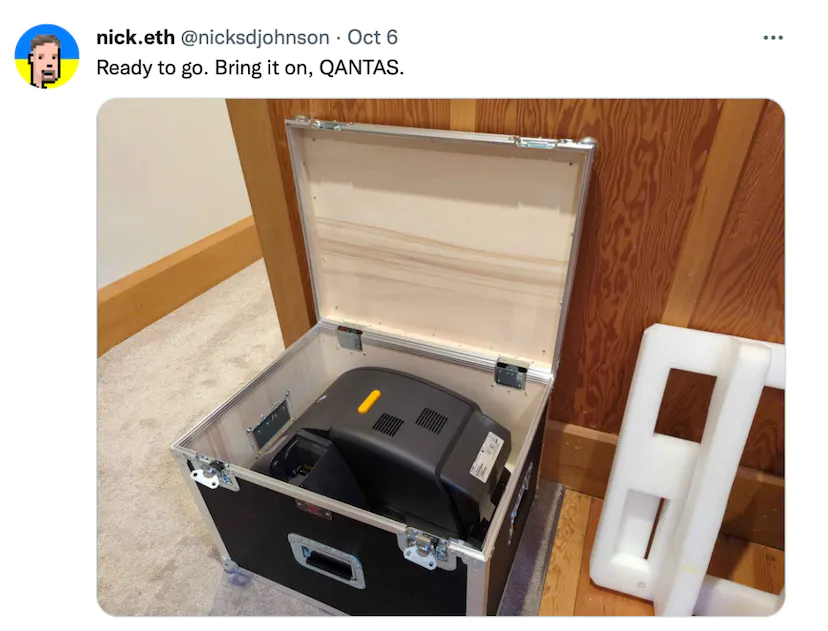 We were aware that we don't have enough cards for everyone, hence we printed the cards on the spot for people who pre-registered 24hrs in advance on day one, then allowed anyone who registered on days two and three. We had one special machine brought by nick.eth.