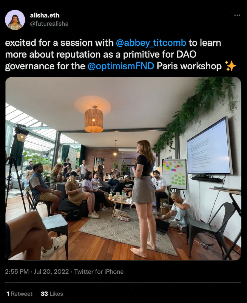 alisha.eth was also in town joining the DAO governance workshop hosted by Optimism.